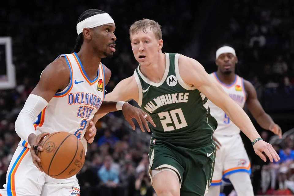 次节比赛,卡尔森空接命中扩大22分优势,雄鹿连追5分,亚历山大与安东尼对攻一记三分。亚历山大两次上篮得分,安东尼上篮与罗林斯三分回敬,肯威、安东尼与多尔特各中一记三分,罗林斯上篮追分。雷霆连得5分扩大22分优势,波蒂斯与安东尼各中一记三分,字母哥上篮追到差14分。雷霆多点开花一波8-4攻势拉开比分,字母哥再得3分,亚历山大三分回敬,上半场结束雷霆69-51领先雄鹿。前两节比赛,亚历山大7中6高效得到15分8助攻、米切尔18分与肯威11分;字母哥3中3得到8+7+3、波蒂斯12分与安东尼3记三分13分。